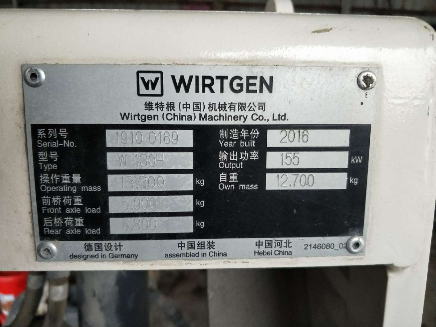 制造年份:2016 序列號:19100169